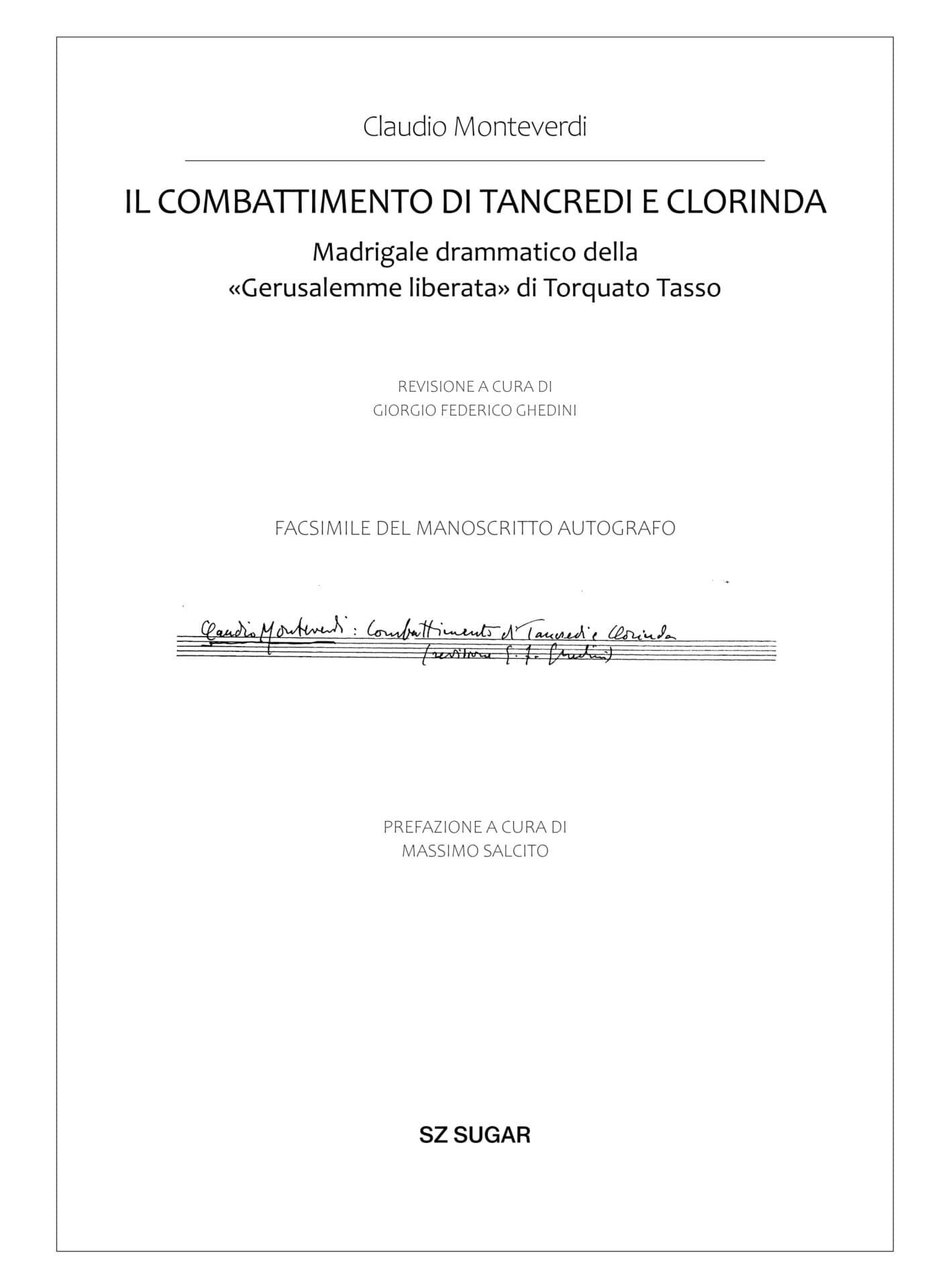 Milano, pubblicazione della monografia “Claudio Monteverdi / IL COMBATTIMENTO DI TANCREDI E CLORINDA / Madrigale drammatico della «Gerusalemme Liberata» di Torquato Tasso. Revisione a cura di Giorgio Federico Ghedini. Facsimile del manoscritto autografo (1949). Prefazione a cura di Massimo Salcito”. Milano: SZ Sugar, 2025.