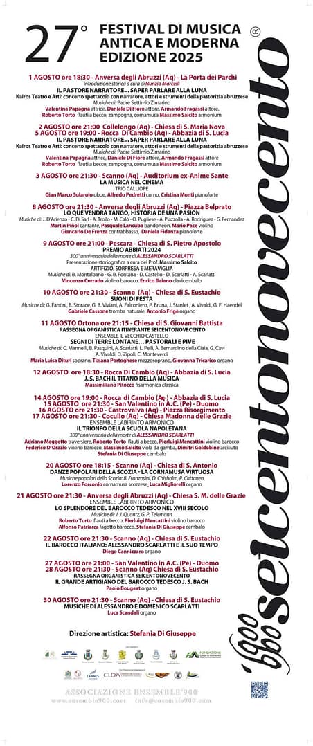 L’associazione Ensemble900 nell’ambito dell’edizione 2025 del Festival di Musica Antica e Moderna, propone una straordinaria occasione per conoscere il grande repertorio della musica antica, con la presenza di due interpreti d’eccezione, unico appuntamento previsto in Abruzzo per la presente stagione.