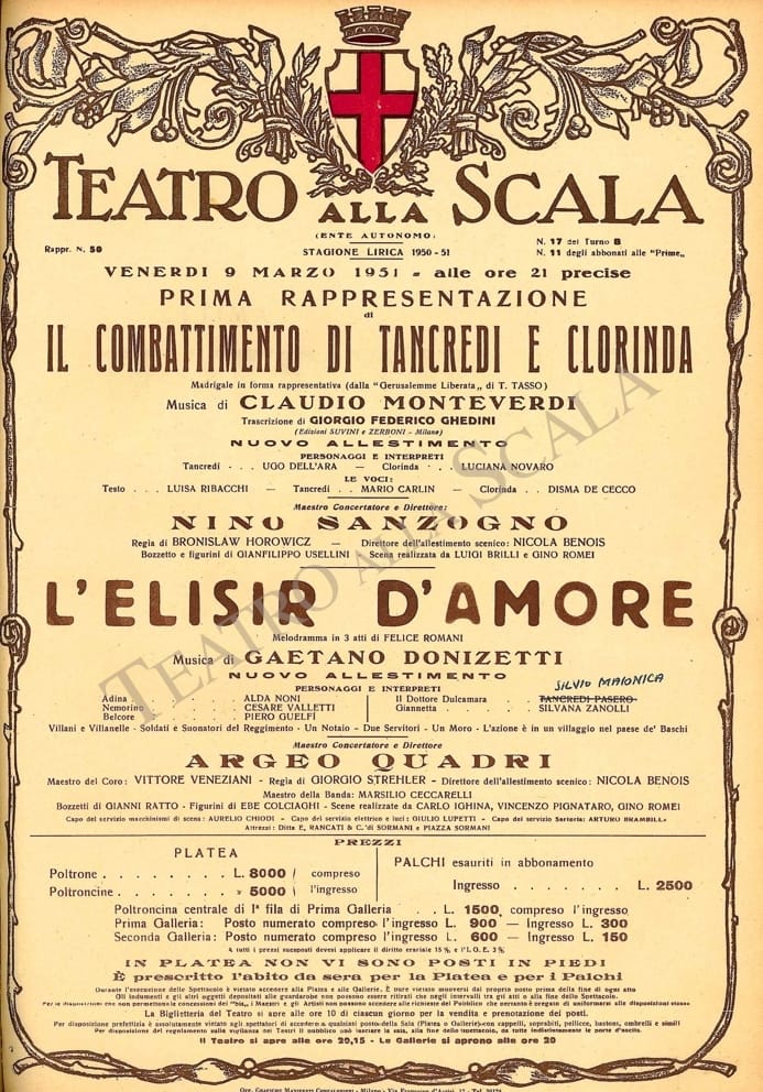 • Locandina dell’allestimento “Combattimento di Tancredi e Clorinda” (Milano, Teatro La Scala, allestimento del 1951
